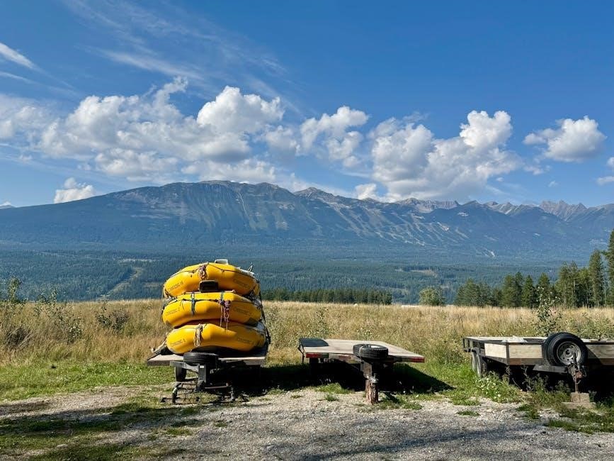 Essential trailer components include the coupler and safety chains, vital for secure hitching and preventing breakaway accidents. Robust electrical systems power trailer lights, ensuring visibility and signaling. Furthermore, effective trailer brakes – electric or hydraulic – are crucial for controlled stopping, especially with heavier loads, guaranteeing safe towing.